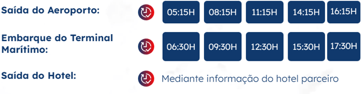 Nós começamos a contar o tempo de duração da viagem a partir do terminal marítimo, pois, é de lá onde as outras modalidades de serviços se iniciam, como o Catamarã. Portanto a duração da viagem é de 3 horas.